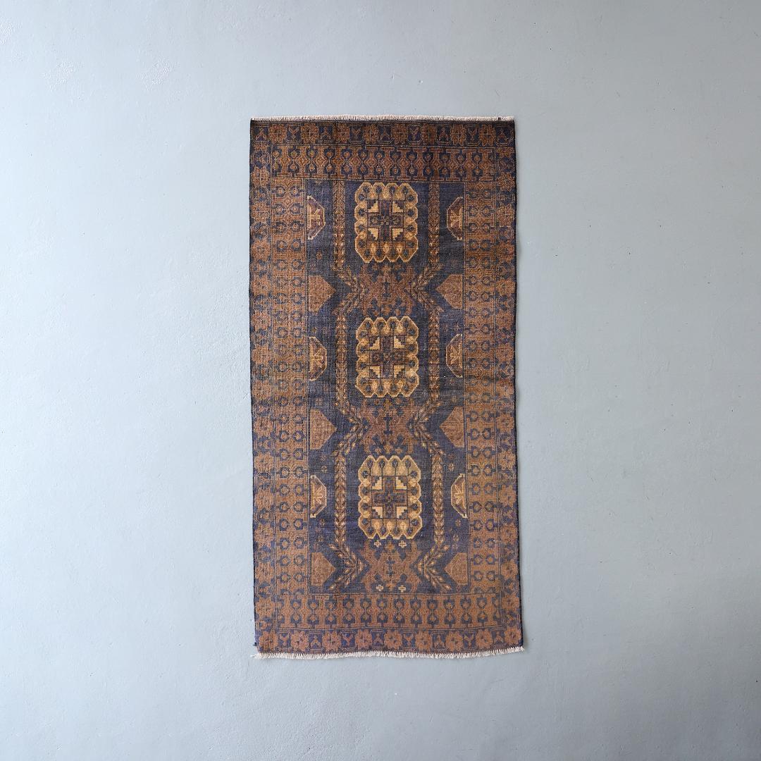 ヴィンテージラグ トライバルラグ パキスタン産(121×77cm)橙 茶 サンド